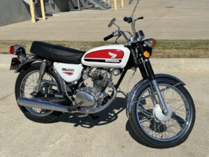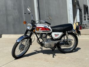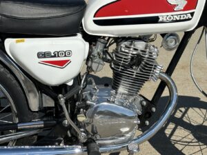 Fully restored 1972 Honda CB100 with 2700 miles. Bike was taken down to the bare frame and every part was either replaced or restored. Every nut, bolt and piece of brightwork was machine polished, even if the part was new. Every painted part was stripped to bare metal and repainted. It runs great and starts on the first kick.
