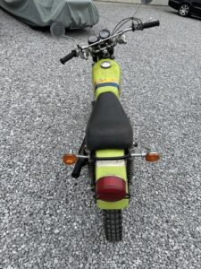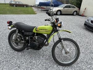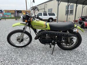 The 1973 Kawasaki 350 Bighorn is a dual-purpose motorcycle with a classic green exterior and a solid build from Japan. With only 6994 miles on the odometer, this bike has been stored in a garage. Perfect candidate for a full restoration or weekend project. Bike is mostly complete. Engine and clutch are free. I have started and ridden this bike. Oil injection is not hooked up. Bike has been garaged for the past 30 years.