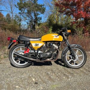 1979 Strada with some nice custom touches. Tommaselli bars, Marzocchi shocks, Hermy’s 2 into 1 exhaust. I am going through old paperwork and if I find any related to this bike it will be included. I was told that Hermy/Herdan did some work on the engine. Upgraded clutch is the only work I have verified so far.