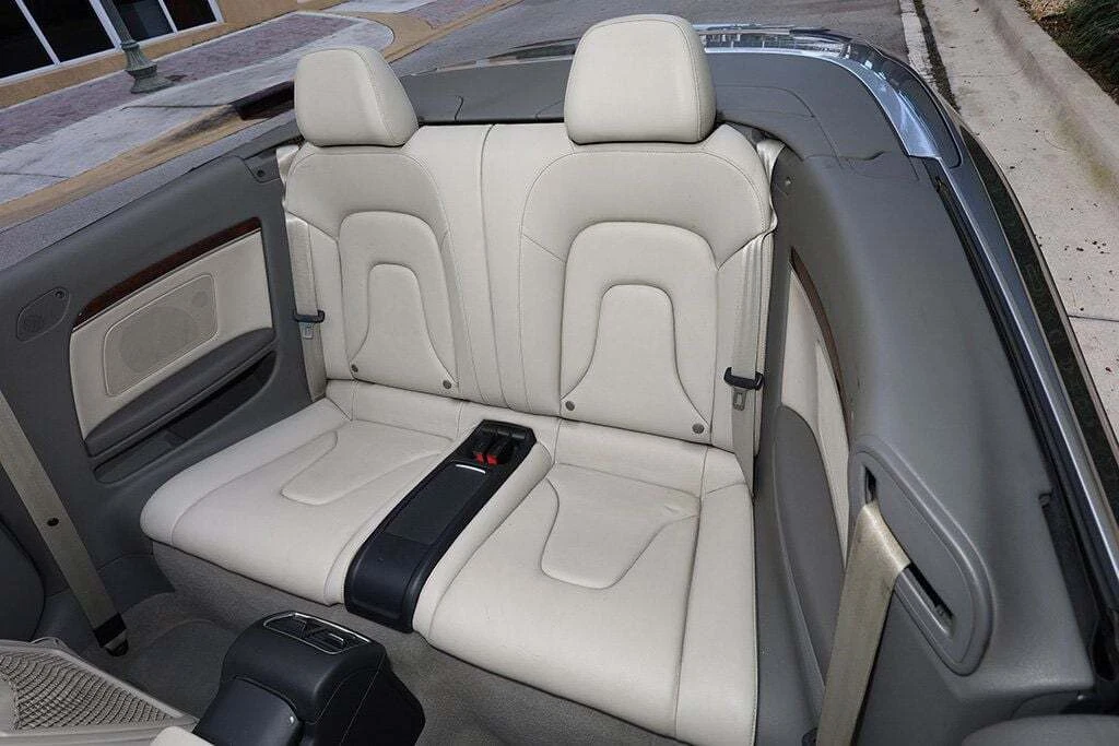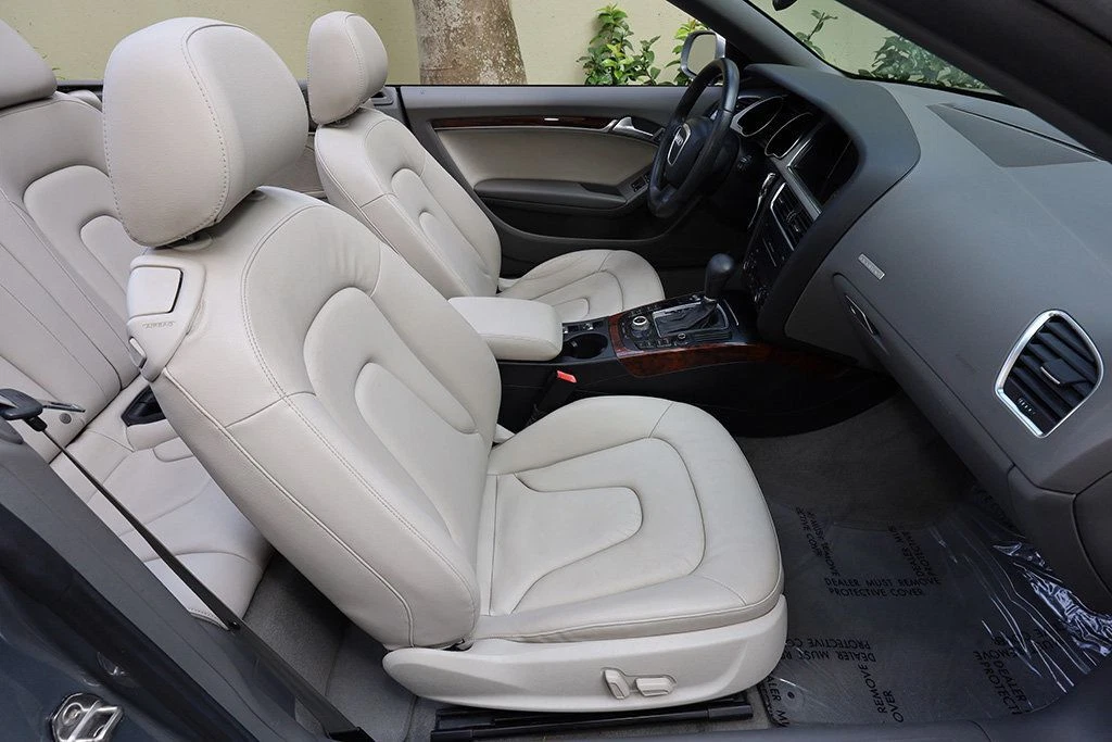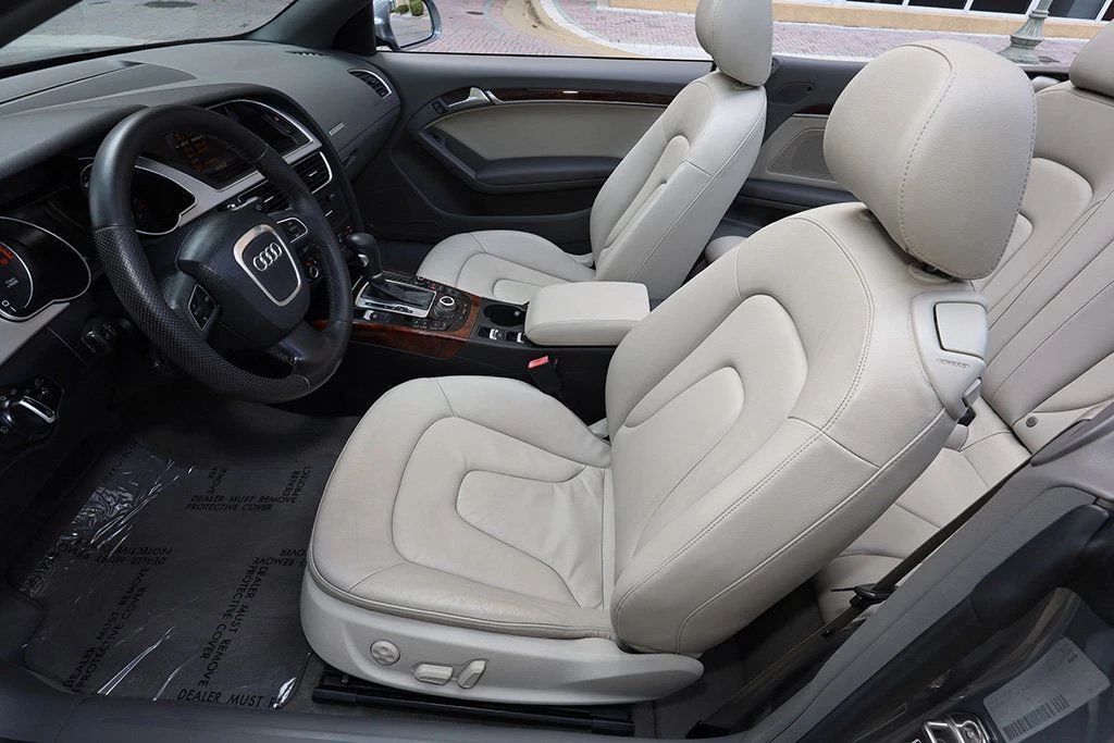 The Premium Plus comes with upgrades including heated seats, 3-zone climate control, Audi music interface, Bluetooth, HomeLink, Xenon Headlamps, 18 5-spoke wheels and a lot more. Options include the Navigation Package with Rear Camera, Quartz Grey paint and Dark Walnut wood trim. Features include:quattro all-wheel drivepower convertible toppower windows, locks, and mirrorsremote entryleather seatspower front seatsdriver’s seat lumbarheated front seats3-zone climate control with rear vents and controls AM/FM/HD/SXM/CD/DVD stereo with multimedia input, SD card slotLCD screenBluetoothGPS navigationrear camerarear parking sensorscruise controltilt wheelHomeLink gate / garage opener Rain-sense wipers18 15-spoke alloy wheelsLED daytime running lampsLED taillights…and a lot more, including front, side, knee and curtain air bags, ABS and stability control.