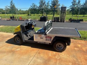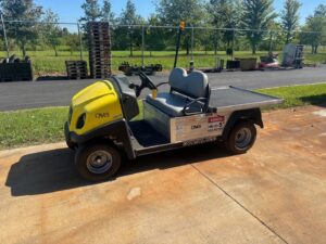 Similar to a golf cart but was used as a personnel carrier in a warehouse.